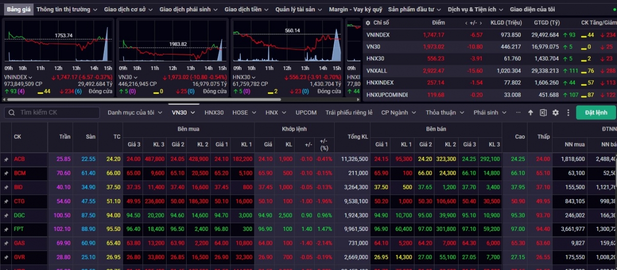 Chốt phiên giao dịch ngày 9/12, VN-Index đóng cửa ở mức 1.747,17, giảm 6,57 điểm