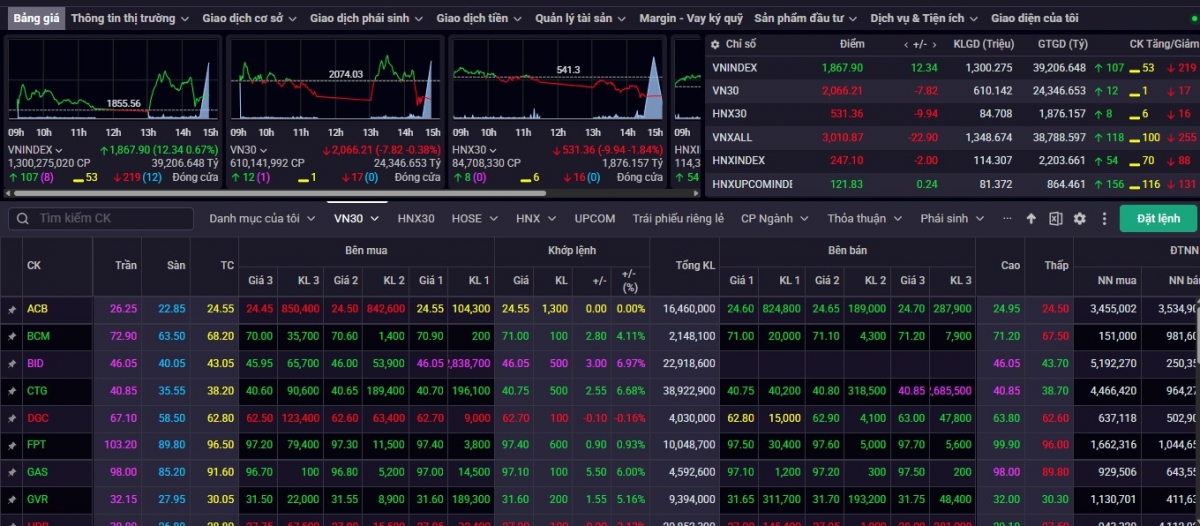 Tuy nhiên, phiên giao dịch cuối tuần đã phản ánh đúng tính chất phân hóa mạnh mẽ mà dòng tiền áp đặt lên diễn biến giao dịch của thị trường trong những phiên gần đây. Thanh khoản khớp lệnh tuần có dấu hiệu đột biến khi lần đầu tiên quay trở lại cao hơn (16,6%) so với bình quân 20 tuần kể từ thời điểm nửa cuối tháng 10. Đóng cửa tuần giao dịch 5/1 – 9/1, VN-Index dừng ở mức 1.867,90 điểm, tăng 83,41 điểm (4,67%).