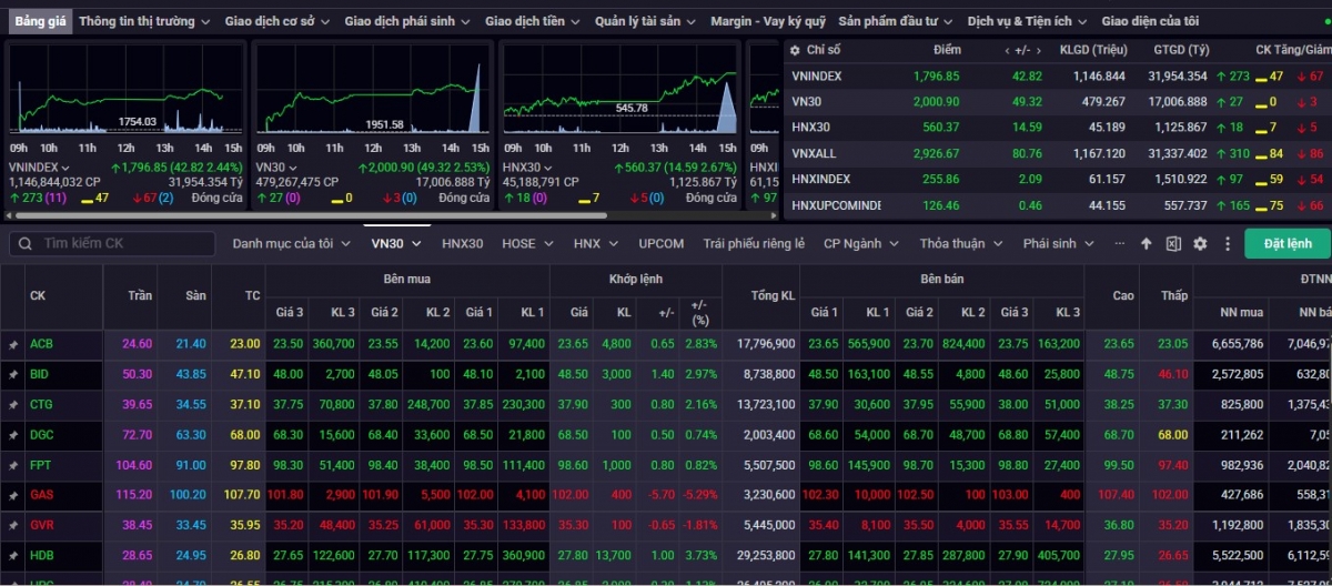 Chốt phiên giao dịch ngày 11/2, VN-Index đóng cửa ở mức 1.796,85 điểm, tăng 42,82 điểm