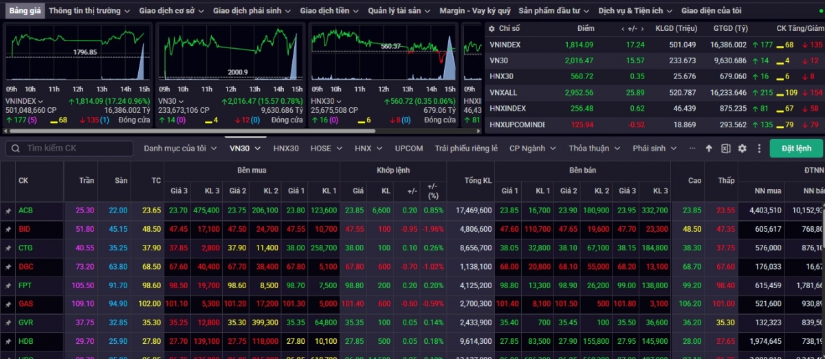 Kết phiên phiên giao dịch 12/2, VN-Index tăng 17,24 điểm, tương đương 0,96% lên mốc 1.814,09 điểm