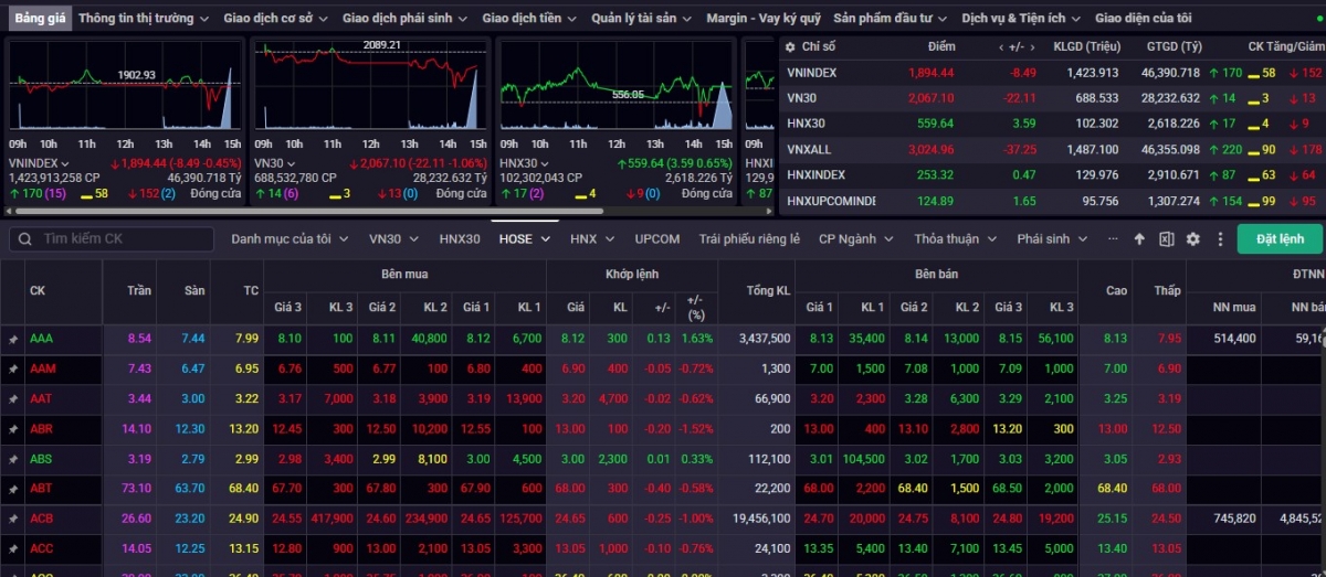 Chốt phiên giao dịch ngày 14/1, VN-Index đóng cửa ở mức 1.894,44, giảm 8,49 điểm