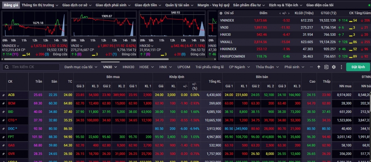 Chốt phiên giao dịch ngày 17/12, VN-Index đóng cửa ở mức 1.673,66, giảm 5,52 điểm