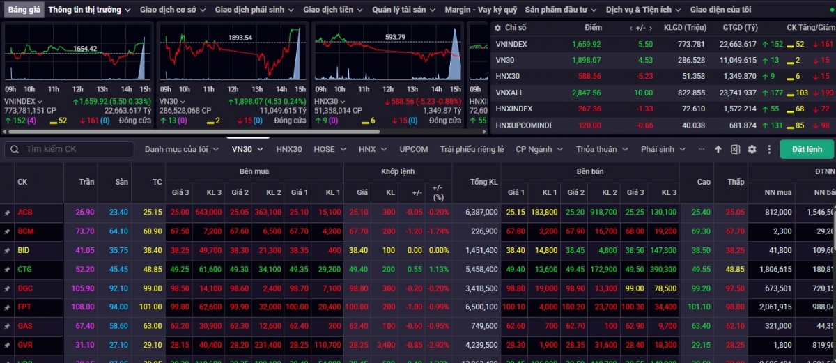 Chốt phiên 18/11, VN-Index đóng cửa quanh mức 1.659,92 điểm