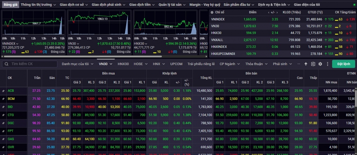 Kết phiên giao dịch ngày 1/10, VN-Index tăng 3,35 điểm (+0,20%) lên mức 1.665,05 điểm