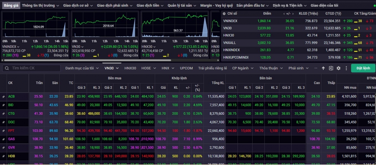 Chốt phiên giao dịch khai xuân 23/2, VN-Index bứt tốc với 36,05 điểm (+1,98%), lên 1.860,14 điểm