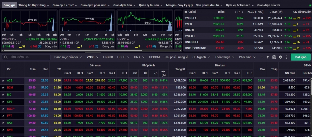 Chốt phiên giao dịch ngày 24/12, VN-Index đóng cửa ở mức 1.782,82, tăng 10,67 điểm