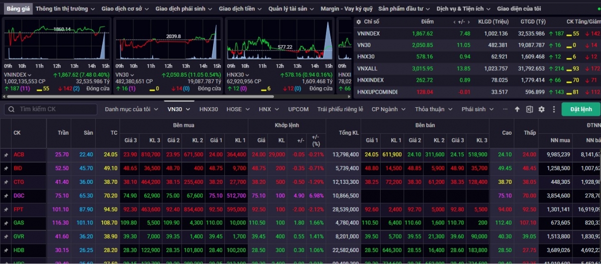 Chốt phiên giao dịch ngày 24/2, VN-Index đóng cửa ở mức 1.867,62 điểm, tăng 7,48 điểm