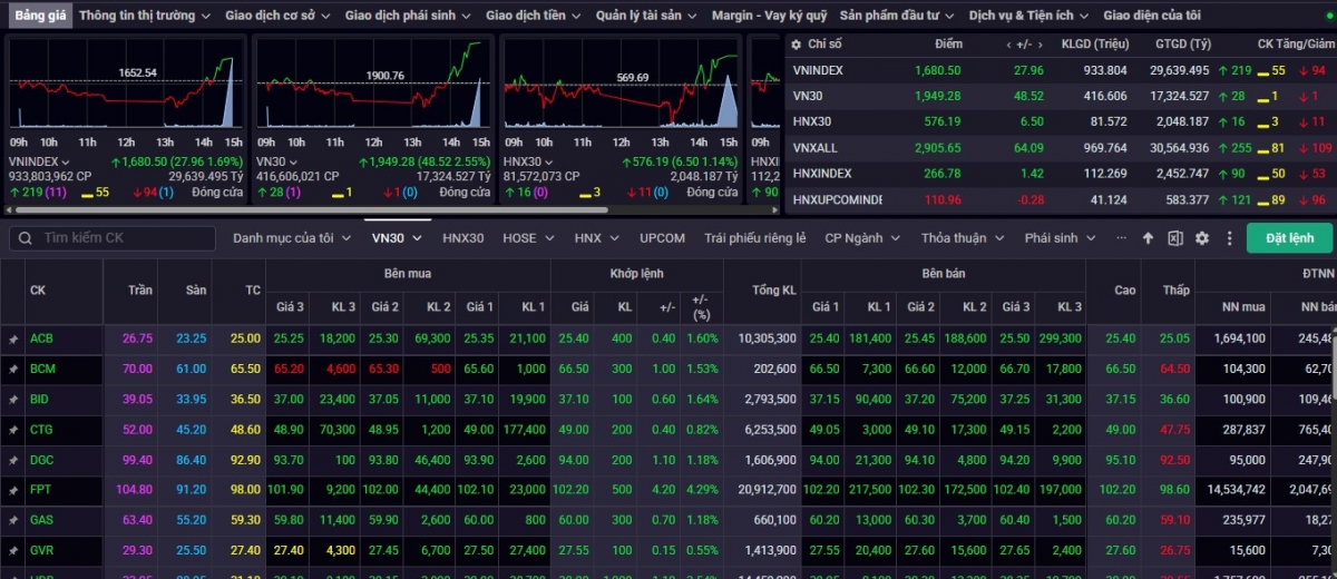 Kết phiên giao dịch ngày 28/10, VN-Index tăng 27,96 điểm (+1,69%) lên mức 1.680,50 điểm