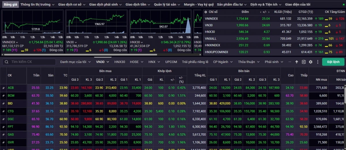 Chốt phiên giao dịch ngày 29/12, VN-Index đóng cửa ở mức 1.754,84, tăng 25,04 điểm