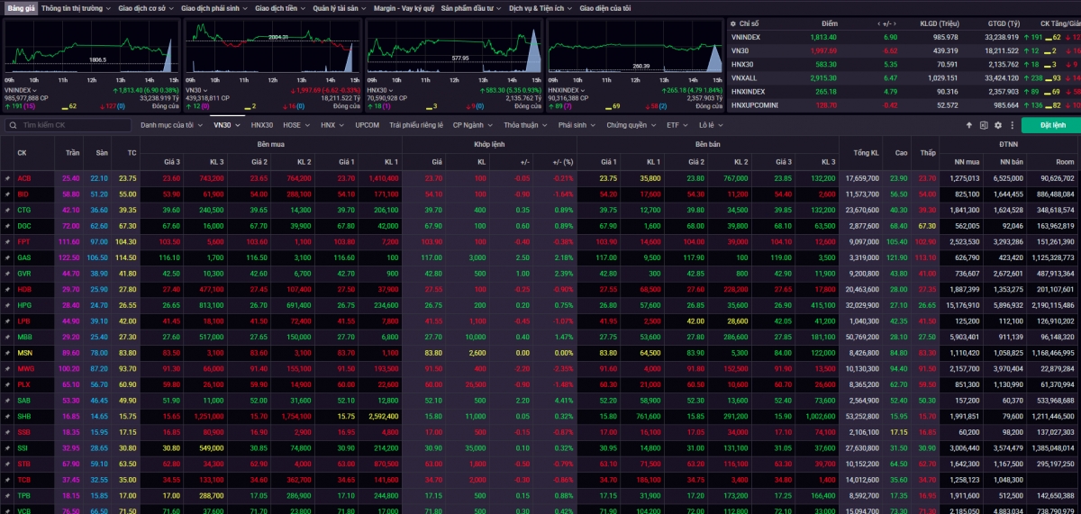 Chốt phiên giao dịch ngày 3/2, VN-Index đóng cửa ở mức 1.813,40, tăng 6,90 điểm