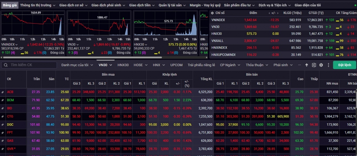 Chốt phiên giao dịch ngày 6/11, VN-Index đóng cửa ở mức 1.642,64, giảm 12,25 điểm