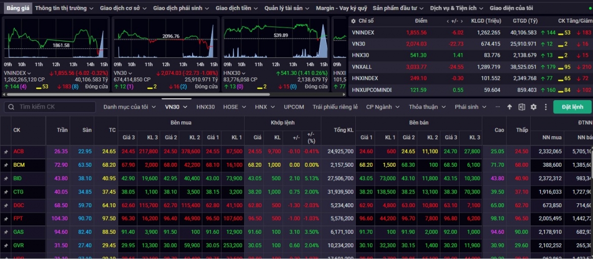 Chốt phiên giao dịch ngày 8/1, VN-Index đóng cửa ở mức 1.855,56, giảm 6,02 điểm