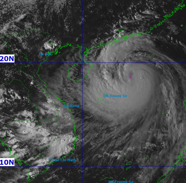 Trung tâm Dự báo khí tượng thủy văn quốc gia nhận định, hồi 16h, vị trí tâm bão khoảng 18.5 độ Vĩ Bắc; 114.6 độ Kinh Đông, cách đặc khu Hoàng Sa khoảng 290km về phía Đông Bắc.