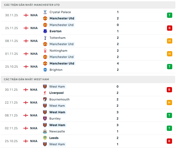 Phong độ MU vs West Ham