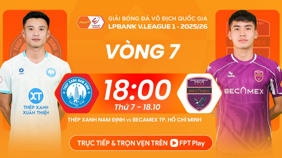 Trận đấu giữa CLB Nam Định vs CLB TP.HCM tại vòng 7 V-League 2025/2026 diễn ra vào lúc 18h hôm nay 18/10. Báo Điện tử Tiếng nói Việt Nam sẽ tường thuật trực tuyến, mời quý độc giả quan tâm theo dõi.