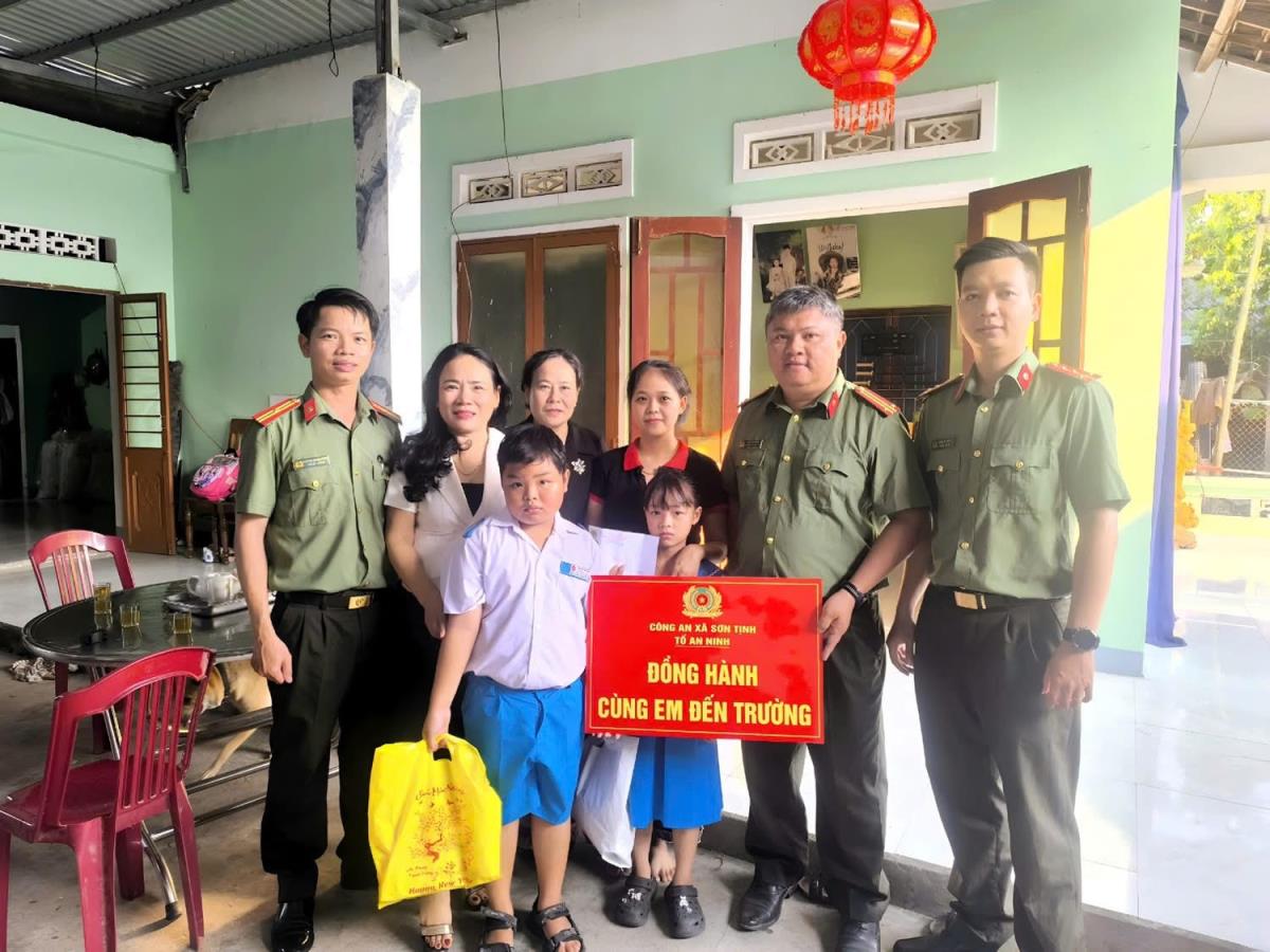 CBCS Tổ An ninh Công an xã Sơn Tịnh đã tự nguyện đóng góp kinh phí, nhận đỡ đầu nuôi dưỡng hai em mỗi tháng 500 nghìn đồng đến khi đủ 18 tuổi, tạo điều kiện để các em tiếp tục đến trường, phát triển toàn diện.