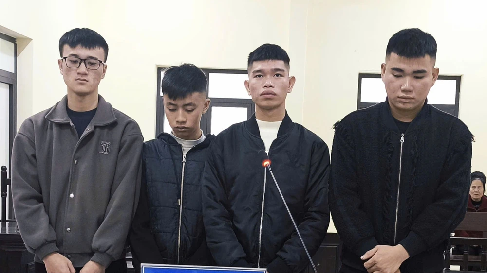 Ngày 9-1, TAND Khu vực 1- Hà Tĩnh xét xử sơ thẩm và tuyên phạt bị cáo Nguyễn Văn Thành (20 tuổi) 8 tháng tù nhưng cho hưởng án treo, Bùi Trí Trung (20 tuổi) 7 tháng tù nhưng cho hưởng án treo, Nguyễn Văn Thành (24 tuổi) và Nguyễn Hữu Phúc (20 tuổi) mỗi bị cáo 6 tháng tù nhưng cho hưởng án treo, cùng về tội gây rối trật tự công cộng.