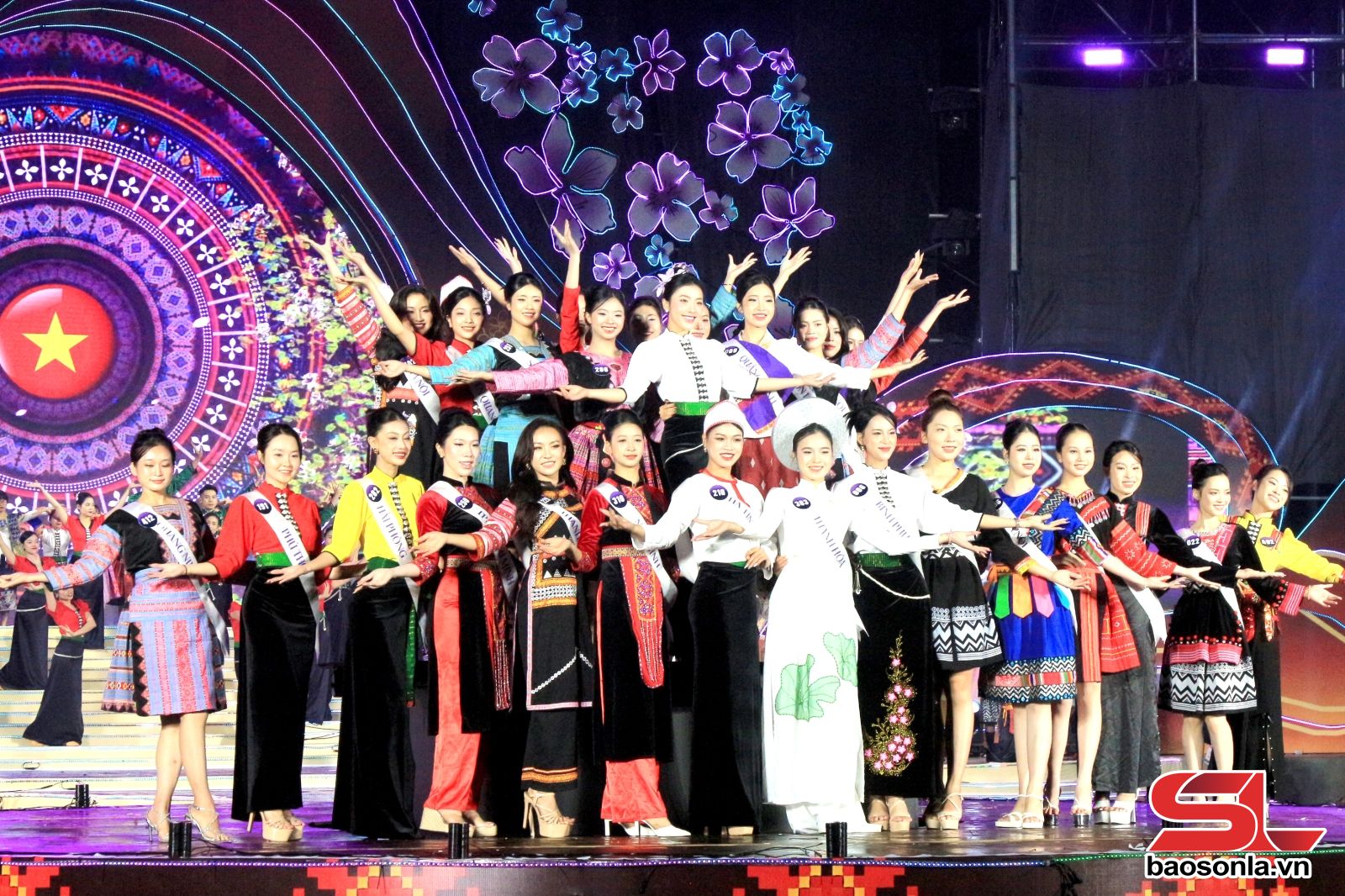 Thí sinh Sơn La trong phần trình diễn trang phục dạ hội dân tộc