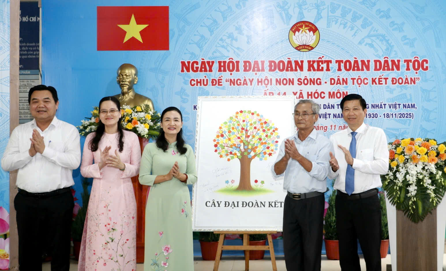 Đồng chí Trần Văn Tuấn cùng đại biểu ký tặng cây đại đoàn kết đến ấp 14, xã Hóc Môn