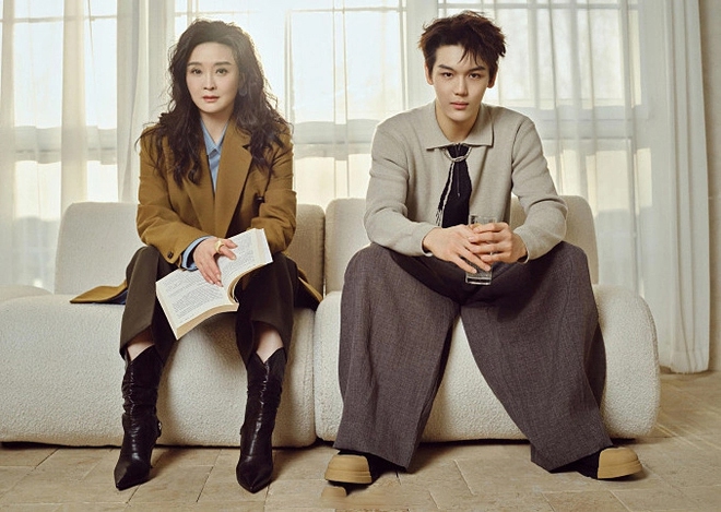 Vương Diễm chụp ảnh kỷ niệm sinh nhật tuổi 52 bên con trai.