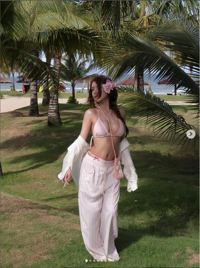Trong những bức ảnh đăng trên Instagram, Hoàng Vi chọn những thiết kế bikini, bodysuit hoặc đầm ôm sát, nhưng cách cô tạo dáng, cách cô đặt ánh mắt, cách cô nghiêng người lại toát lên thứ gợi cảm có kiểm soát, biết điểm dừng và biết cách làm người khác… tò mò hơn là thỏa mãn ngay lập tức.