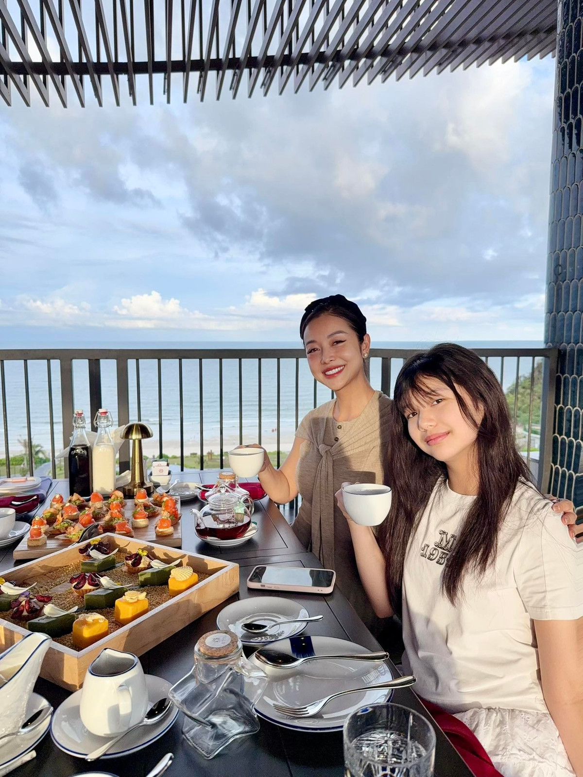 Nhiều người nhận xét, hai mẹ con trông như hai chị em khi đứng cạnh nhau.
