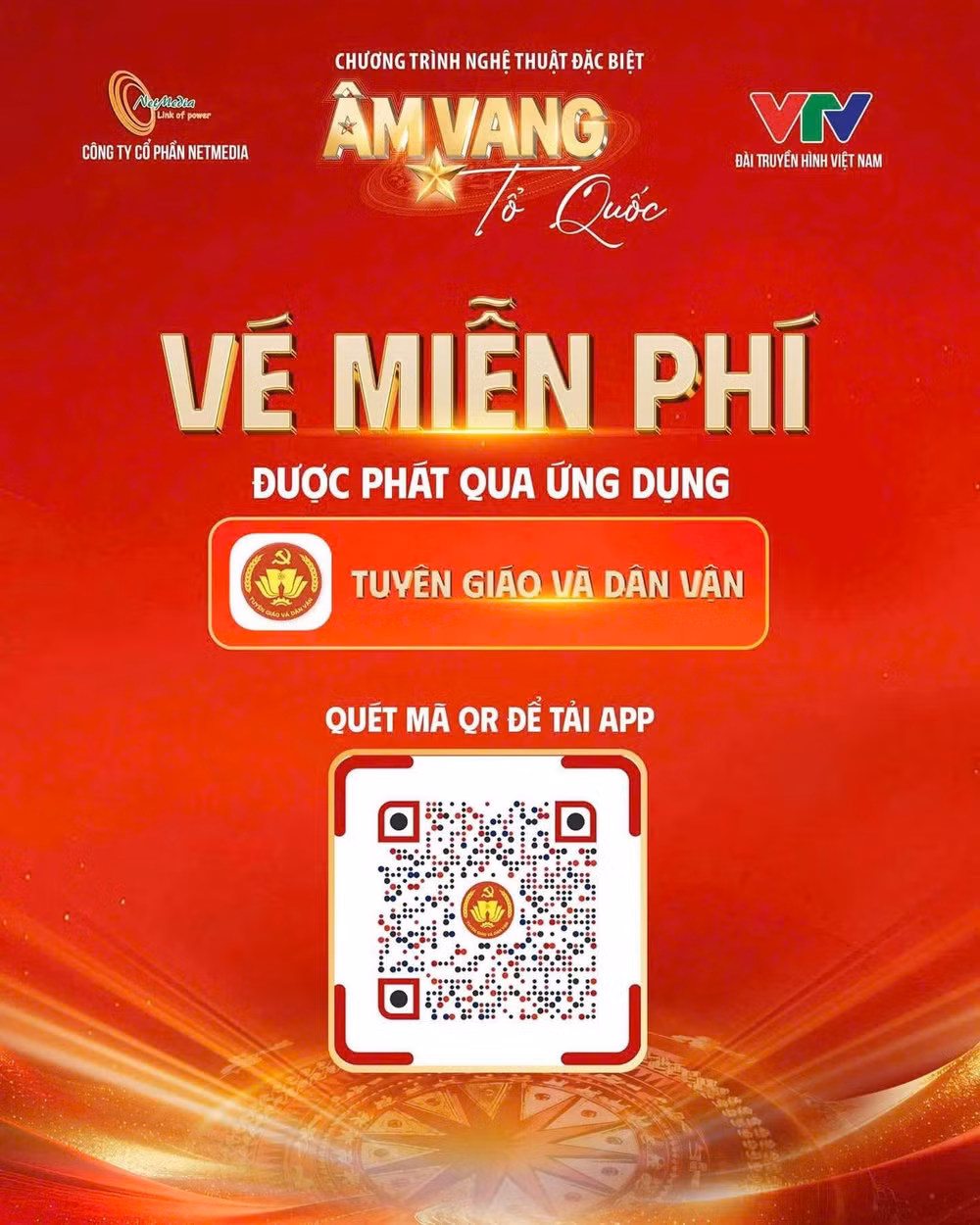 Để đăng ký vé, khán giả cần tải ứng dụng Tuyên giáo và Dân vận tại địa chỉ https://tgdv.vtscloud.vn/installation, tạo tài khoản cá nhân và theo dõi thông báo mở cổng đăng ký từ Ban tổ chức.