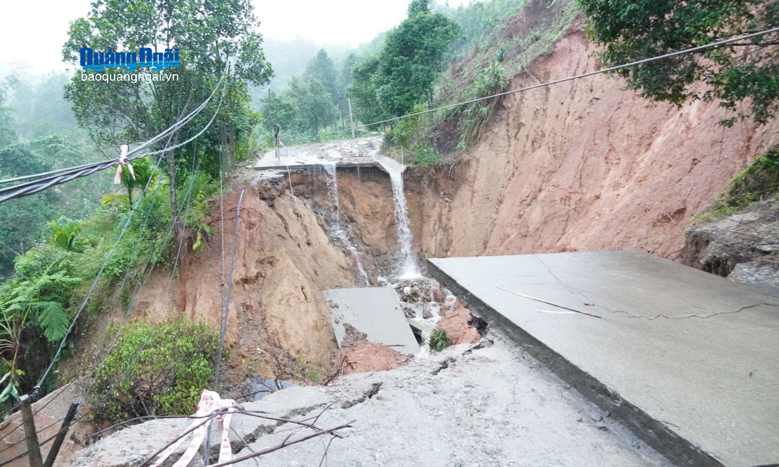 Trong đó, tại Km8+200, mưa lũ gây sạt lở hơn 1.000 mét khối làm cả một đoạn đường dài hàng chục mét bị sạt lở, chia cắt, khiến việc đi lại giữa xã Sơn Tây Hạ và các thôn bị gián đoạn, đặc biệt ảnh hưởng đến 170 hộ dân thuộc 2 thôn Đăk Pao và Đăk Panh. Sau khi xuất hiện các điểm sạt lở, xã đã cử người chốt chặn không cho người dân qua lại các điểm sạt lở.