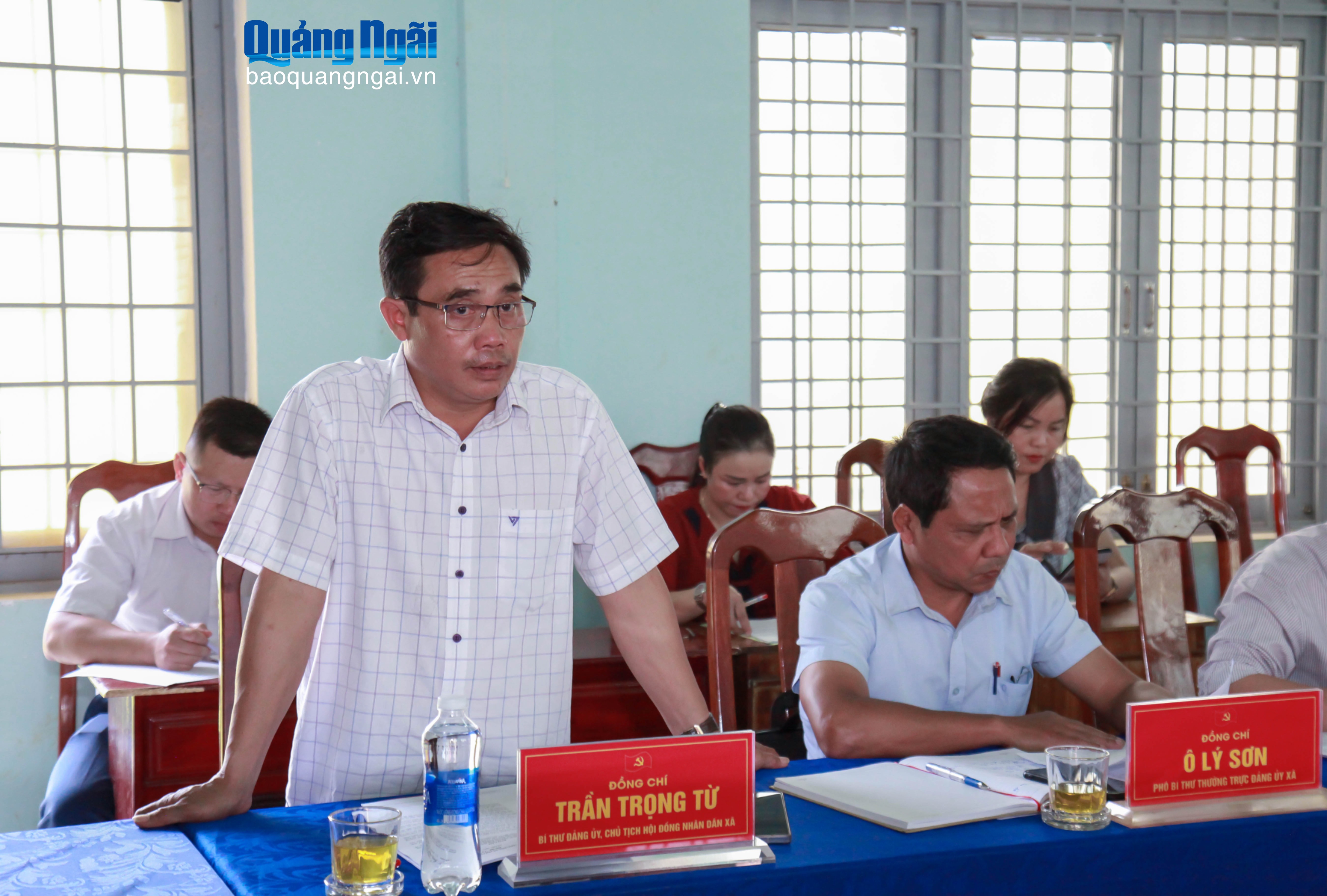 Đại diện lãnh đạo xã Xốp báo cáo tại buổi làm việc.