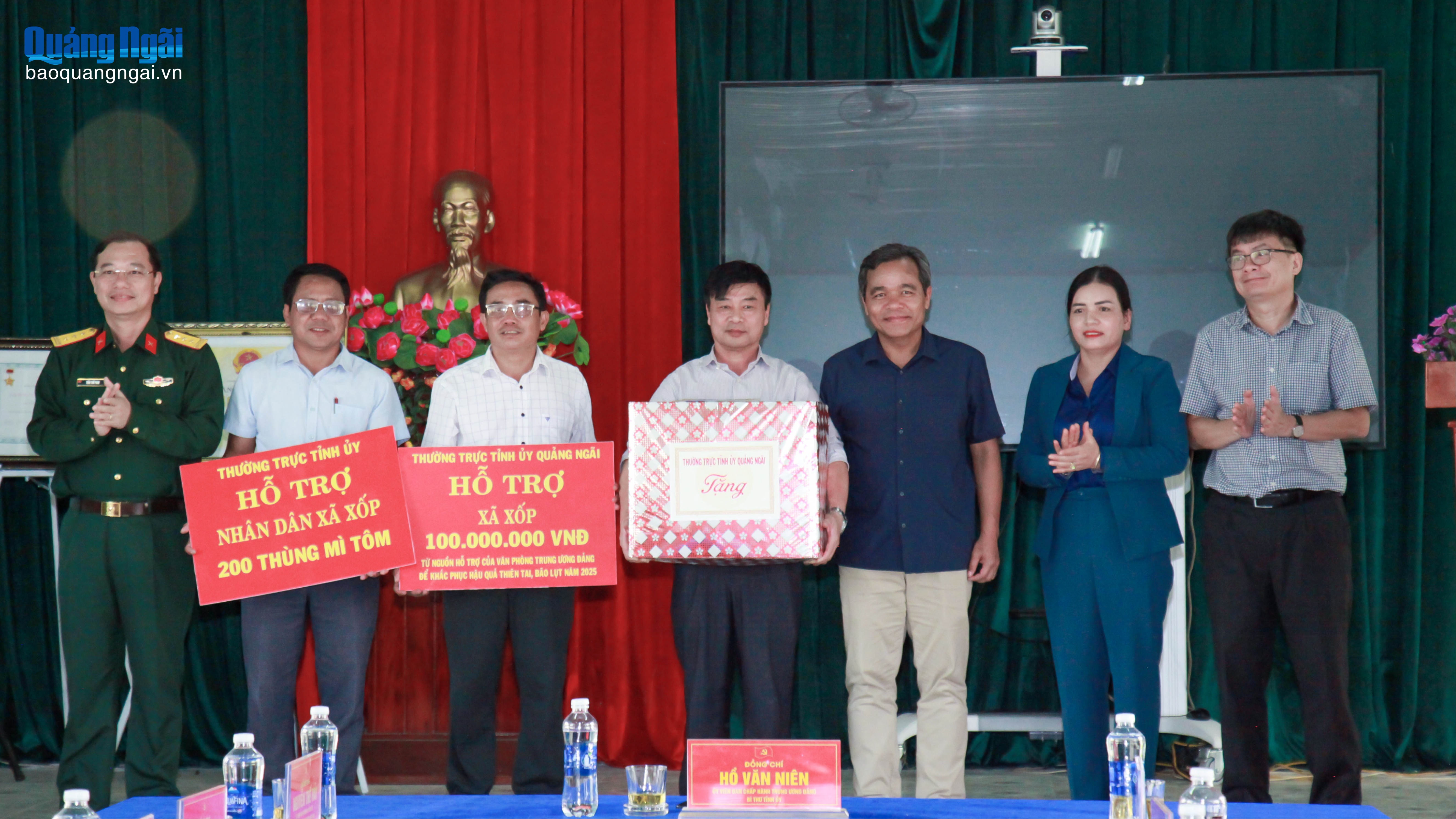 Ủy viên Trung ương Đảng, Bí thư Tỉnh ủy Hồ Văn Niên tặng quà hỗ trợ, động viên xã Xốp.