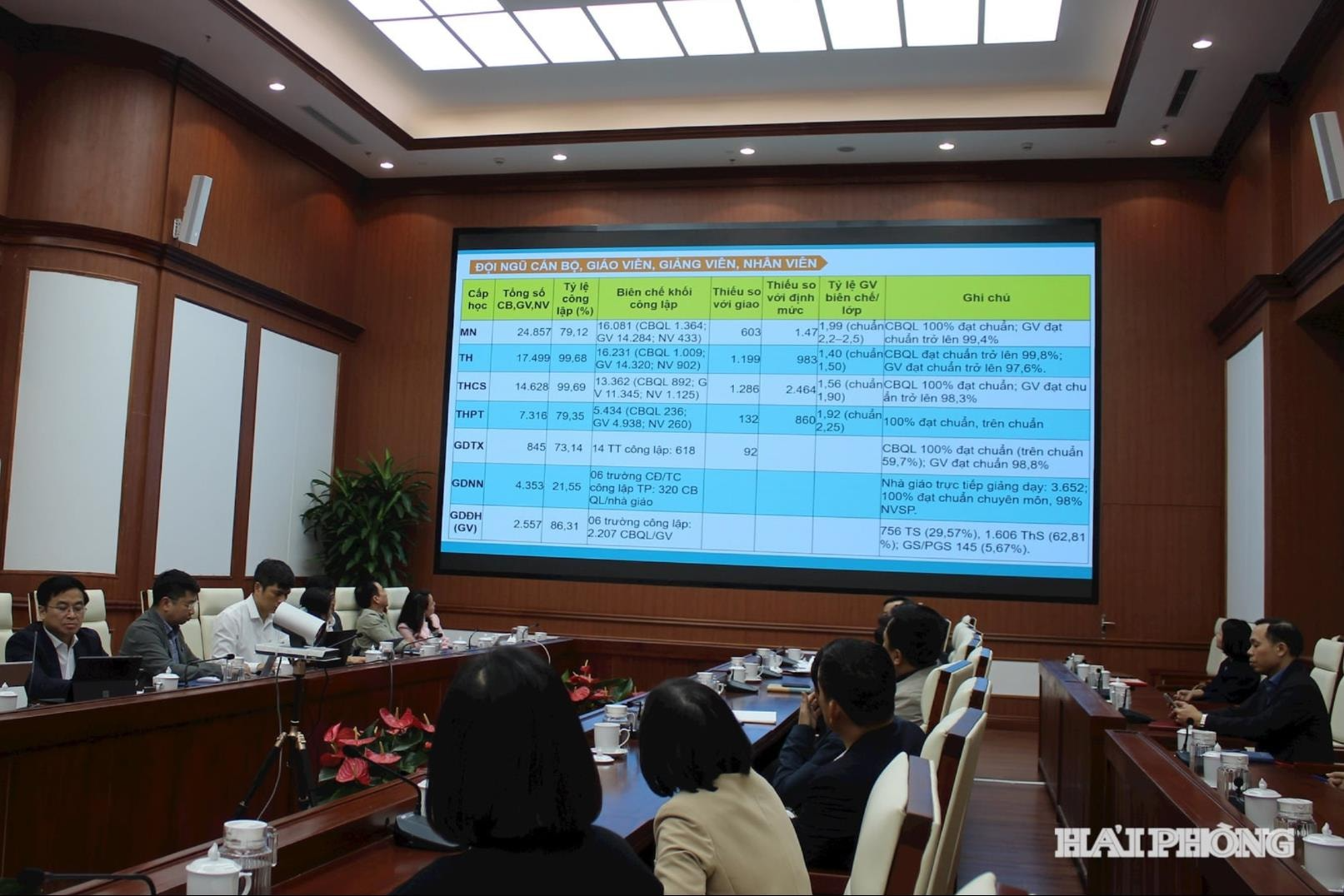 Sở Giáo dục và Đào tạo trình chiếu các số liệu về thực trạng giáo dục và đào tạo trên địa bàn thành phố Hải Phòng hiện nay.