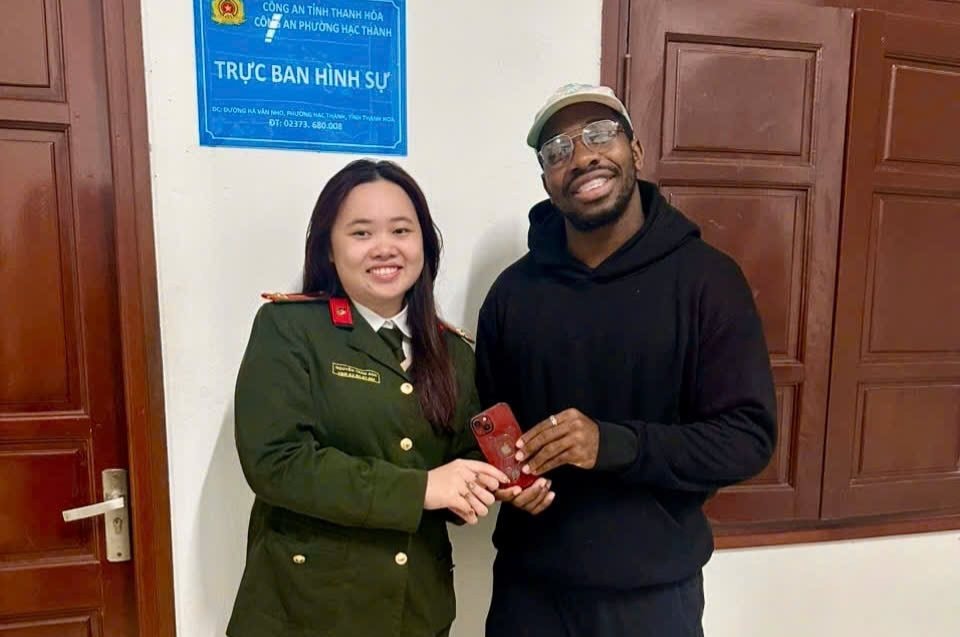 Nhận lại chiếc điện thoại quý giá, du khách người Jamaica không giấu nổi niềm vui mừng và xúc động. Anh Rimario Gordon đã gửi lời cảm ơn chân thành đến cán bộ, chiến sĩ Công an phường Hạc Thành vì sự hỗ trợ kịp thời.