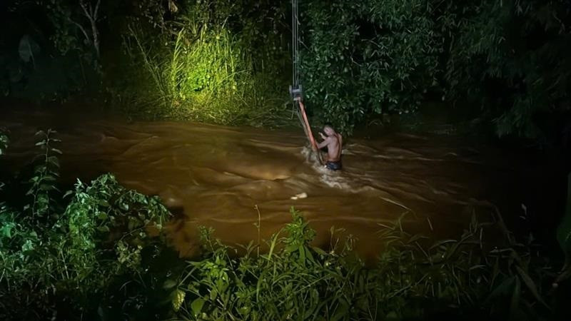 Cứu hộ xe bị lũ cuốn xuống suối tại Yên Bái trong cơn bão số 5. Ảnh: PTI SOS