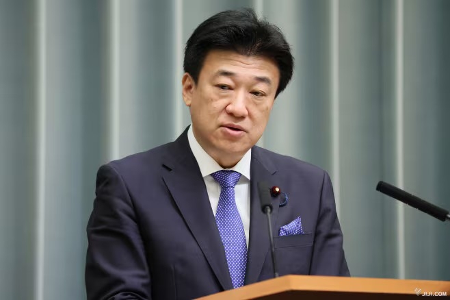 Bộ trưởng Kihara phát biểu tại cuộc họp báo. (Ảnh: Jiji Press)