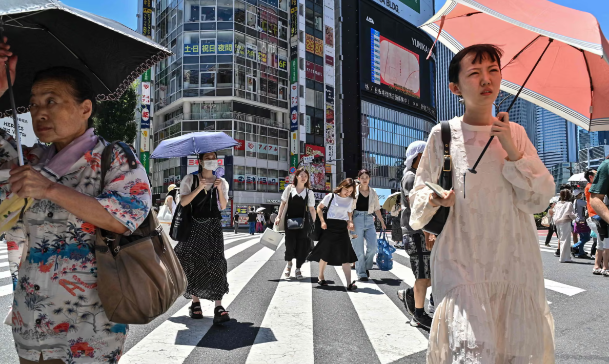 Người đi bộ dưới nắng nóng gay gắt tại Nhật Bản, mùa hè 2025. (Ảnh: The Guardian)