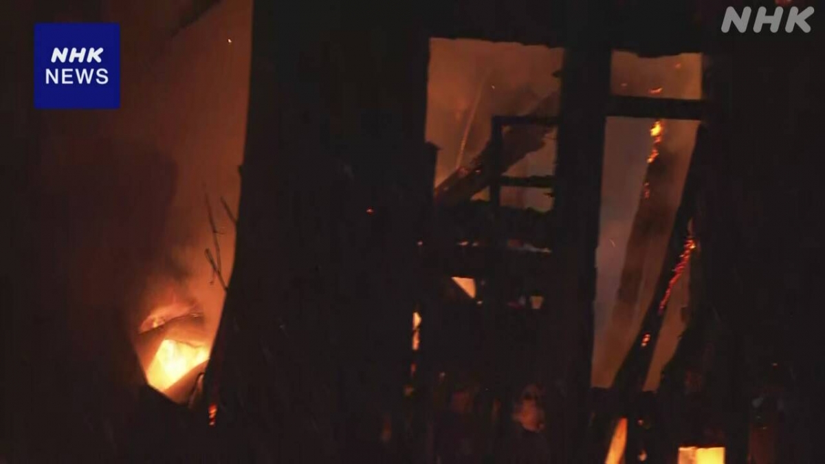 Một trận hỏa hoạn xảy ra gần một trường mẫu giáo ở Aomori, nguyên nhân chính xác chưa được xác nhận, nhưng nhiều khả năng do trận động đất gây ra - Ảnh: NHK