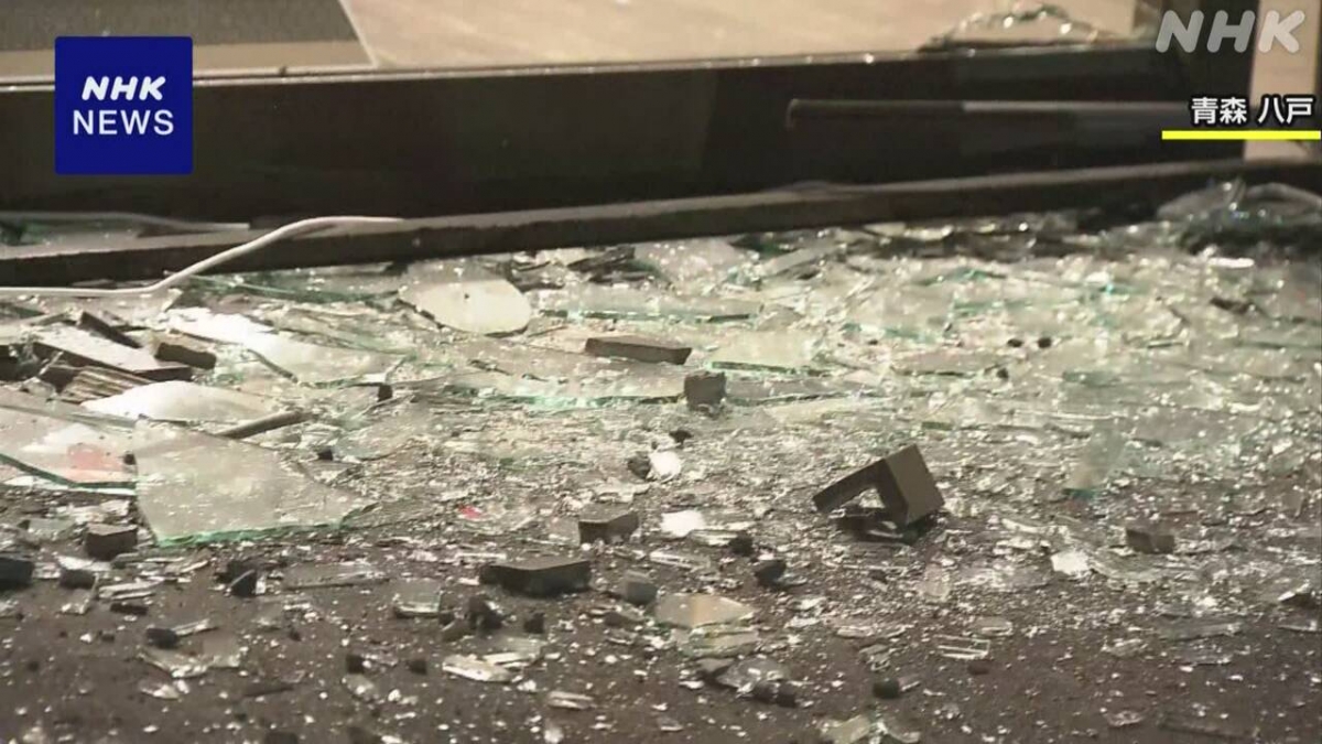 Nhiều cửa kính của các tòa nhà đã bị vỡ hoặc hư hại do trận động đất gây ra - Ảnh: NHK