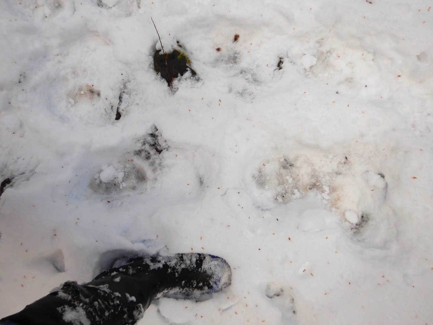 Dấu chân gấu do Muto chụp. Muto cho biết đã chuẩn bị kỹ lưỡng hơn cho khả năng gặp gấu hoang. “Tôi mang theo bình xịt gấu và ba chuông đuổi gấu. Bình xịt gấu ở hông bên phải còn chuông gấu treo ở cả hai bên người”, Muto cho biết. “Tôi tránh đi quá sớm vào buổi sáng và quá muộn khi trời tối”. Ảnh: Japan Times.