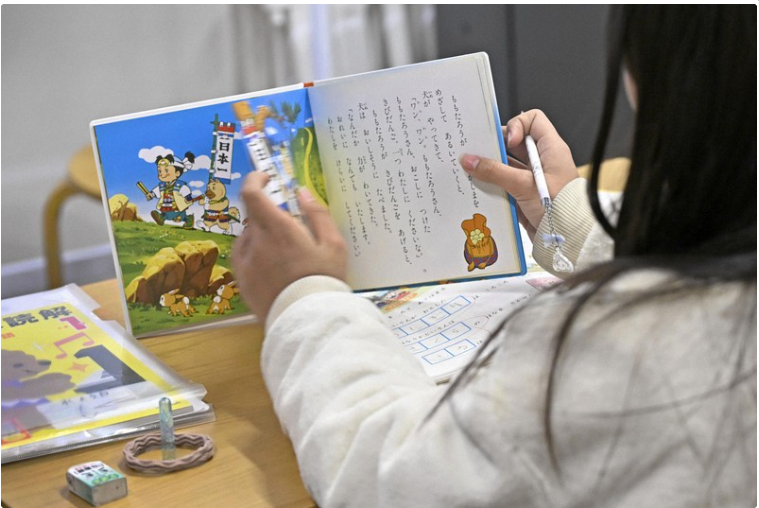 Một em nhỏ gốc nước ngoài đọc sách tiếng Nhật trong lớp học hỗ trợ ngôn ngữ dành cho học sinh quốc tế tại Tokyo, ngày 28-1-2026. Ảnh: Kyodo