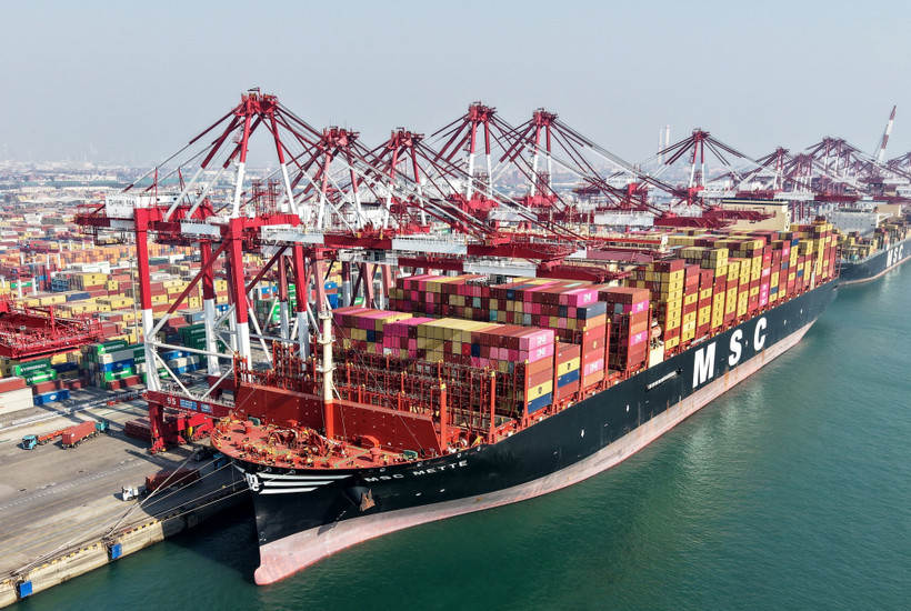 Quang cảnh cảng hàng hóa tại Thanh Đảo, tỉnh Sơn Đông, Trung Quốc. (Nguồn: THX/TTXVN)