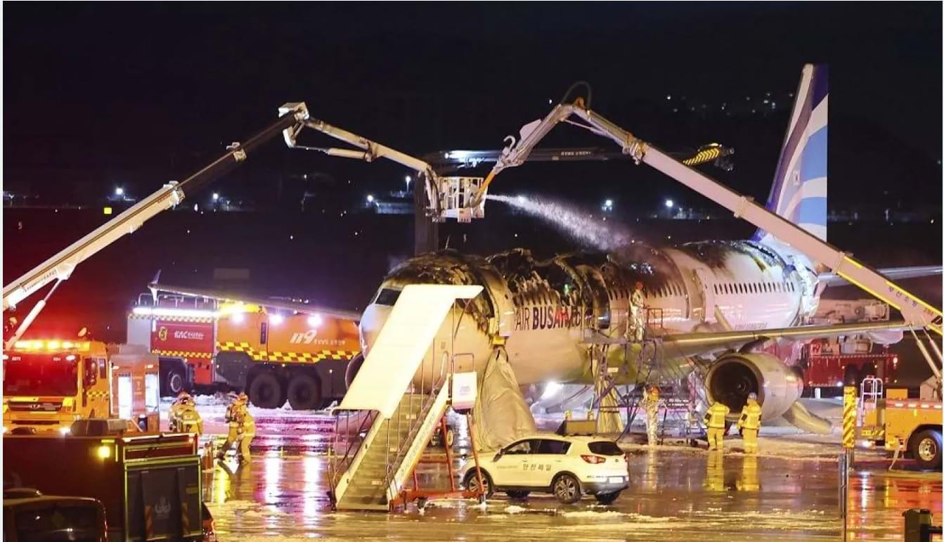 Pin sạc dự phòng được cho là nguyên nhân gây cháy, phá hủy chiếc Airbus A321-200 chở khách của hãng Air Busan hồi tháng 1.2025, khiến ba người bị thương nhẹ. Ảnh AP
