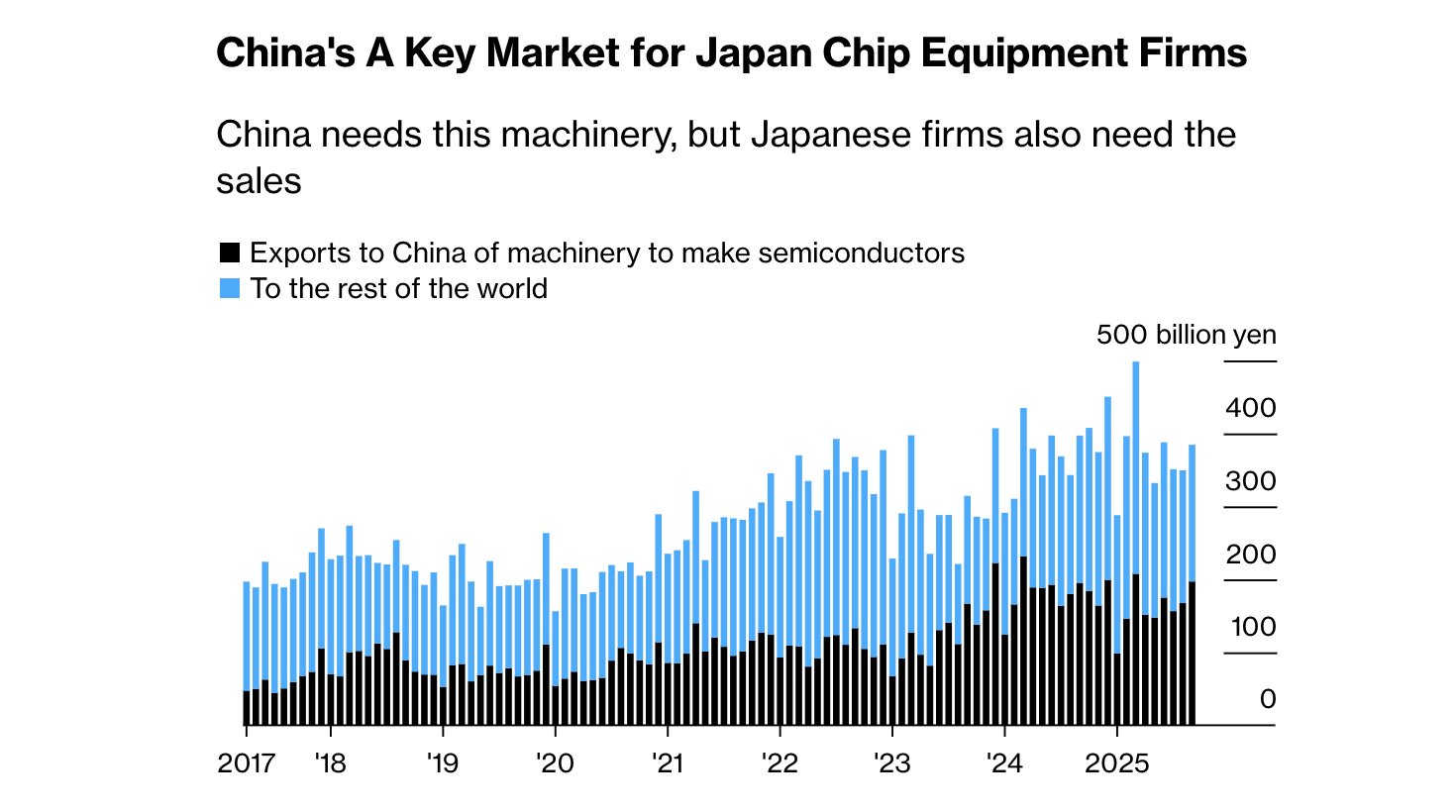 Trung Quốc là thị trường quan trọng đối với các công ty thiết bị chip của Nhật Bản. Biểu đồ: Bloomberg