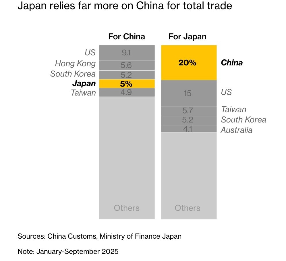 Ngoài các tuyên bố và gây áp lực trên mặt trận ngoại giao thì những phản ứng đáp trả tức thì của Bắc Kinh như cảnh báo du khách không đến Nhật, đình chỉ nhập khẩu hải sản và đóng băng phê duyệt phim cho thấy Trung Quốc đang nắm giữ đòn bẩy kinh tế đáng kể trước Tokyo, đồng thời hé lộ biên độ hành động hạn chế của Nhật.