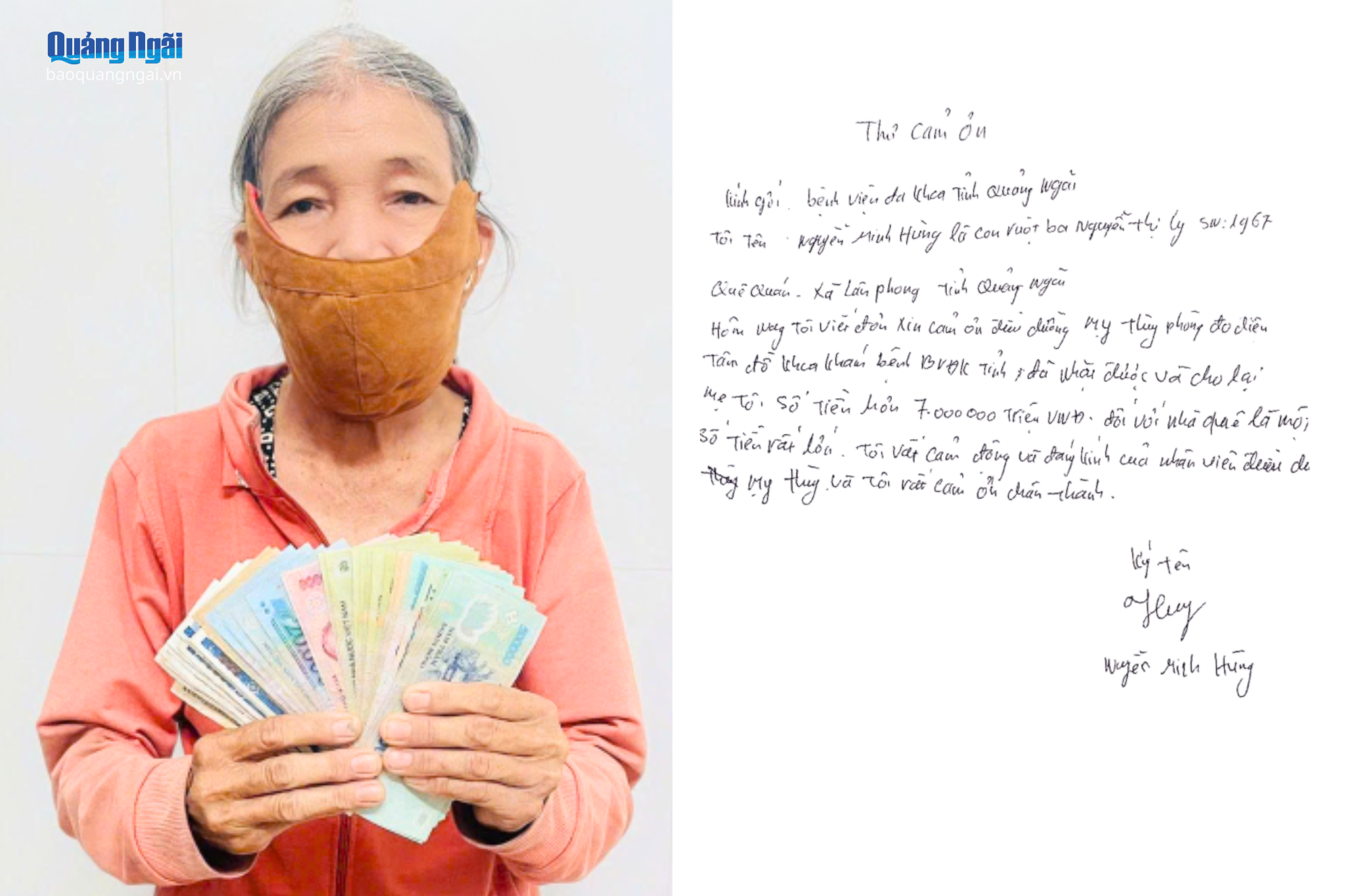 Được biết, trong quá trình đến khám, chữa bệnh tại bệnh viện, bà Ly đã sơ ý đánh rơi số tiền nói trên.
