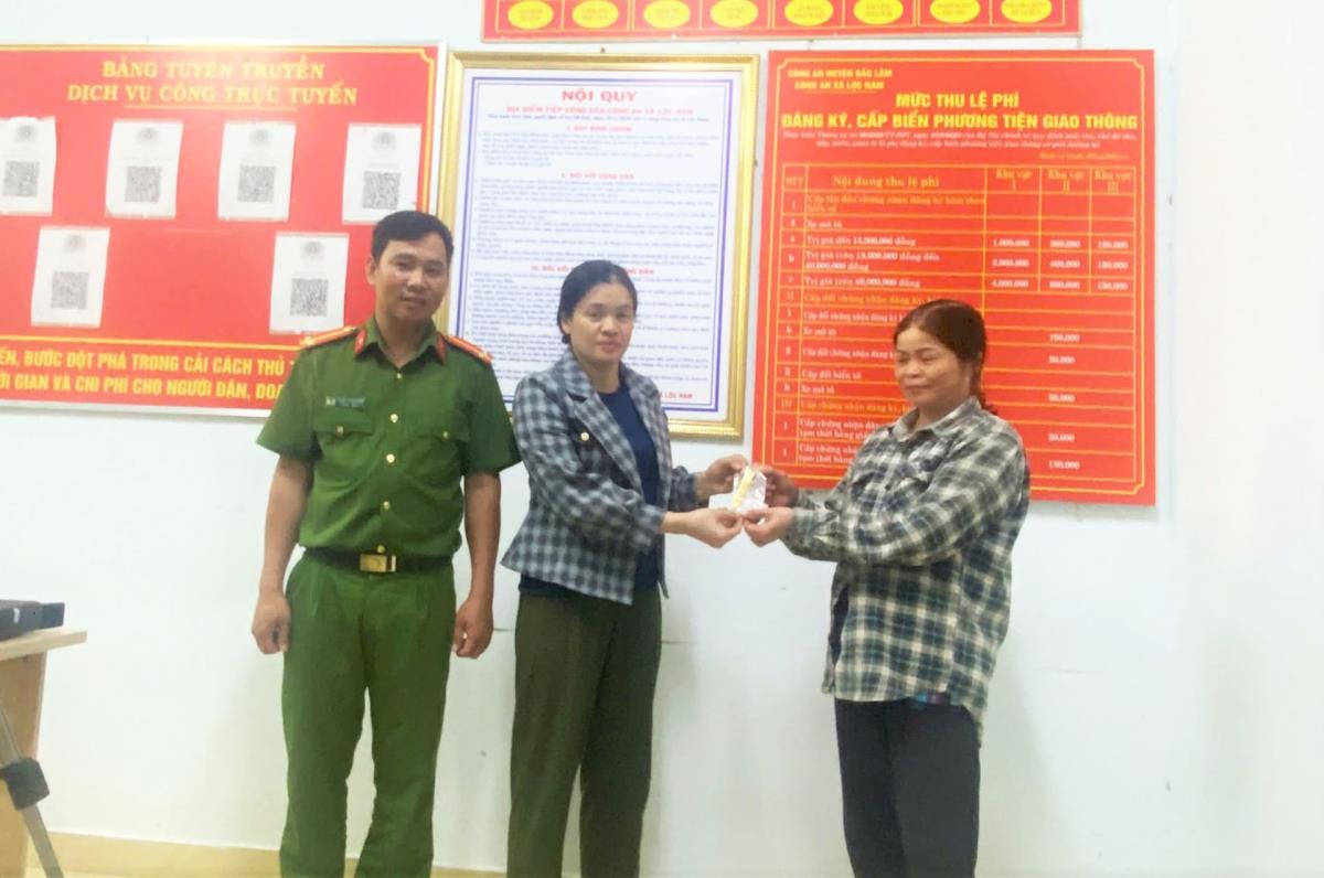 Sau 2 ngày xác minh, Công an xã Bảo Lâm 3 xác định người đánh rơi tài sản là bà Đỗ Phương Thúy (57 tuổi, trú xã La Dạ, Lâm Đồng). Chiều 6-10, Công an xã Bảo Lâm 3 cùng chị Mai hoàn tất các thủ tục trao trả lại tài sản nhặt được là chiếc lắc vàng (5 chỉ) cho bà Thúy. Nhận lại tài sản, bà Thúy vui mừng gửi lời cảm ơn chị Mai và Công an xã Bảo Lâm 3.