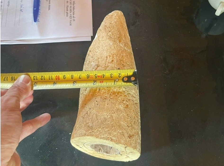 Ông H. cho biết vật trên là ngà voi được con trai ông nhặt ở khu vực sông Lò đem về nhà cất giữ và rao bán trên mạng.