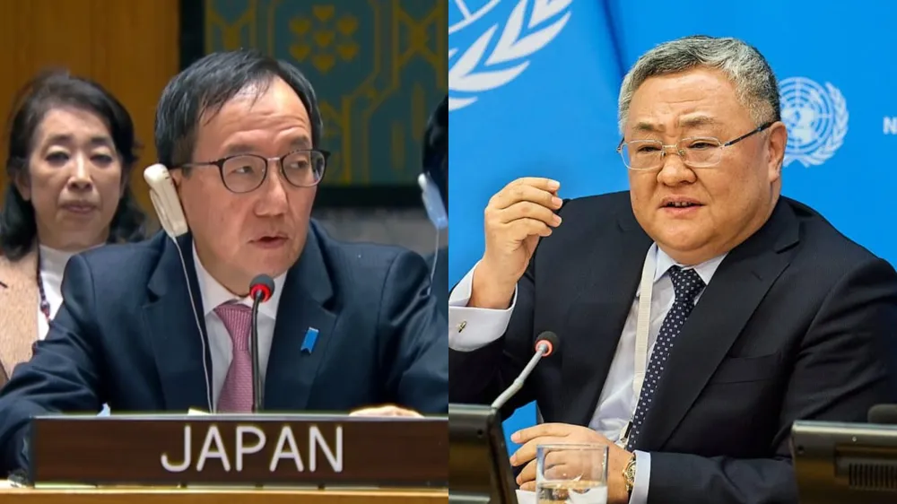 Đại sứ Nhật tại LHQ Kazuyuki Yamazaki (trái) và Đại sứ Trung Quốc tại LHQ Phó Thông. Ảnh: PHÁI ĐOÀN THƯỜNG TRỰC NHẬT TẠI LHQ/PASSBLUE