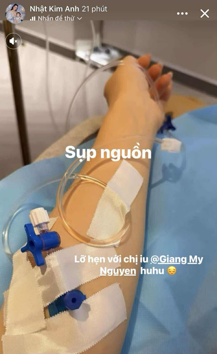 Mới đây, Nhật Kim Anh khiến người hâm mộ không khỏi lo lắng khi đăng tải hình ảnh đang truyền dịch trên trang cá nhân. Kèm theo đó, nữ diễn viên kiêm ca sĩ viết ngắn gọn hai chữ: "Sụp nguồn", cho thấy tình trạng sức khỏe không ổn, đáng báo động ngay thời điểm cận Tết.