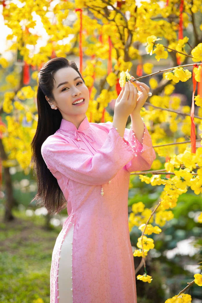Nhật Kim Anh rạng rỡ trong tà áo dài màu hồng (Ảnh: FBNV).