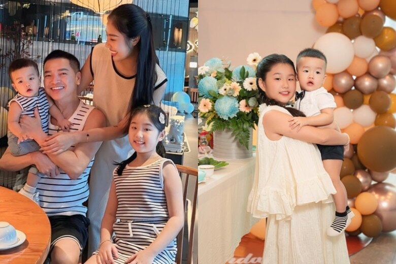 Quang Minh duy trì mối quan hệ gần gũi và ấm áp với con riêng của vợ.